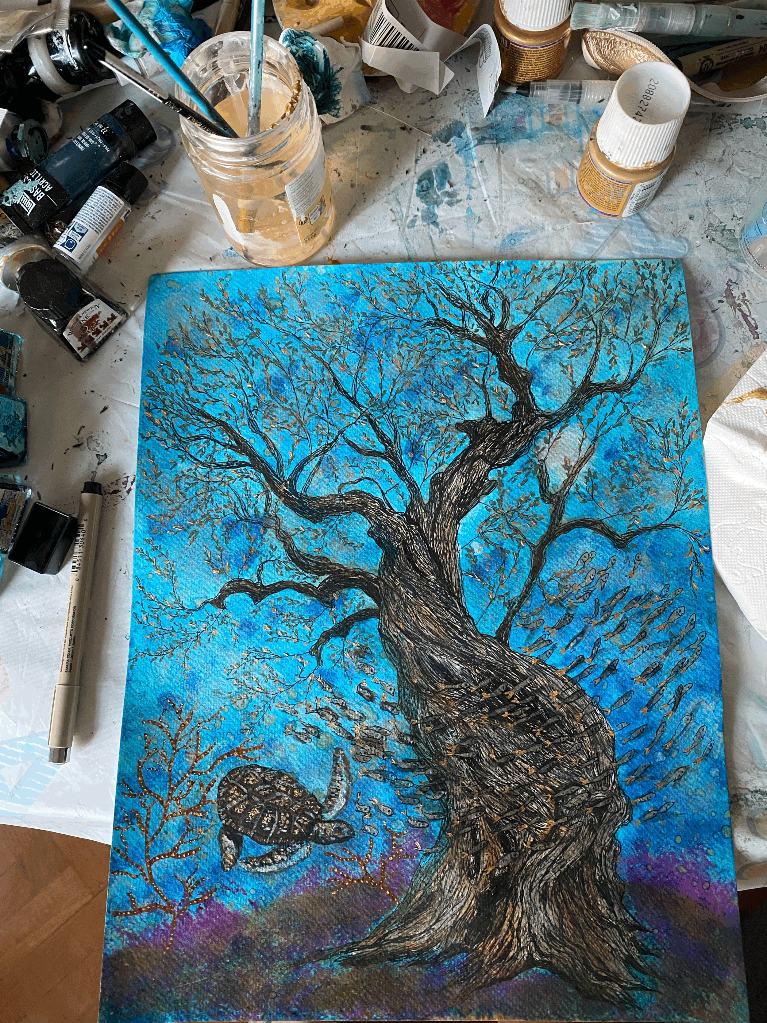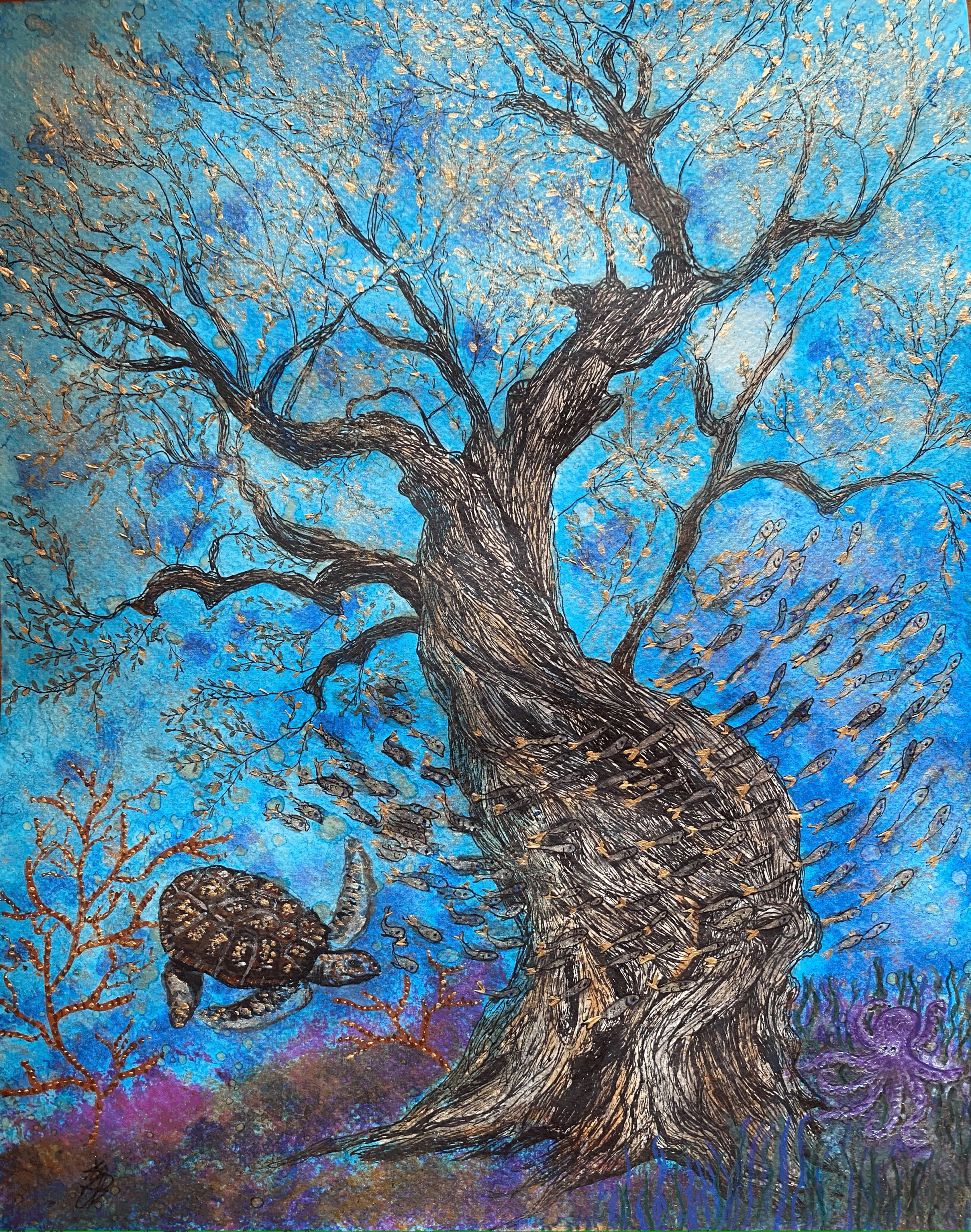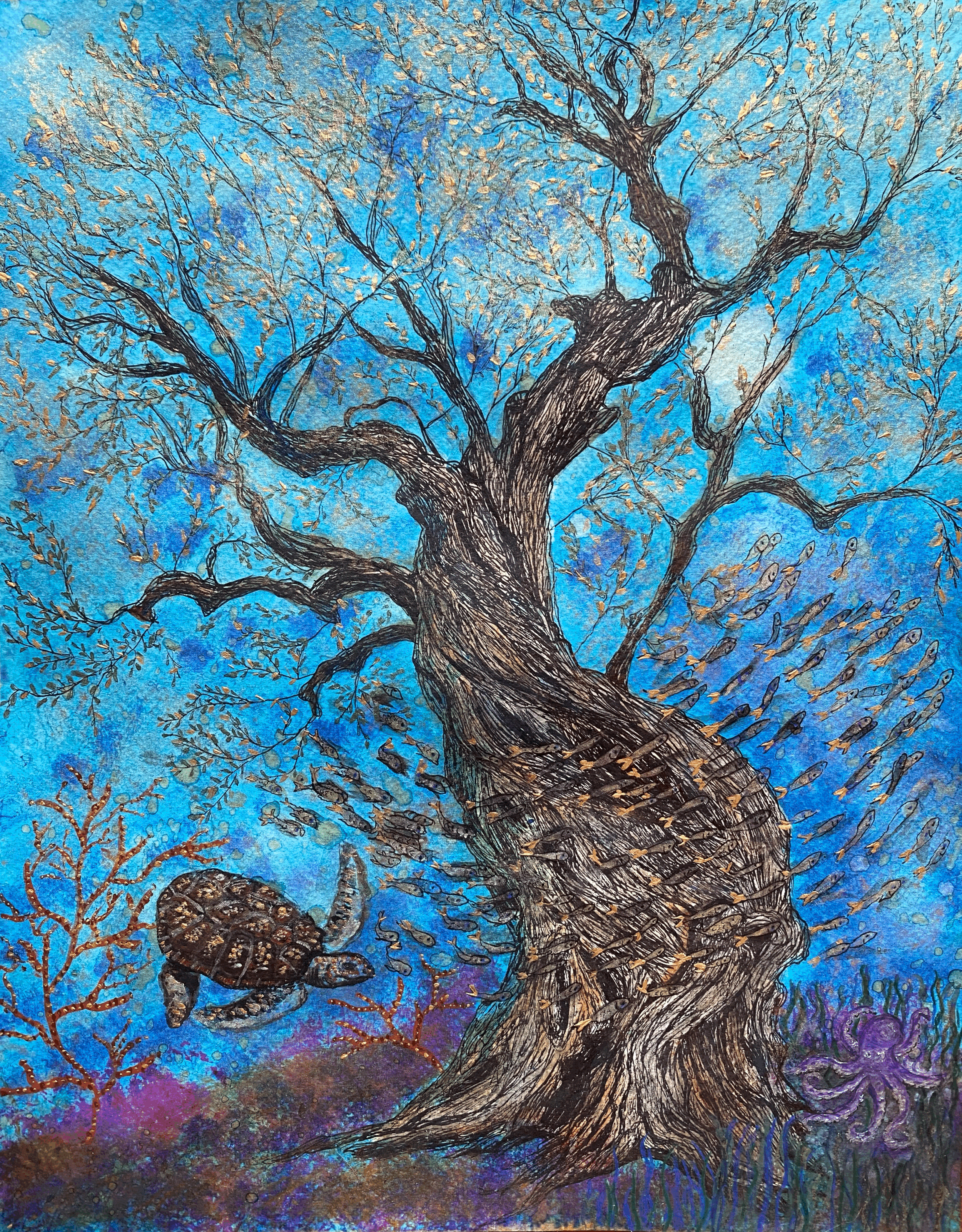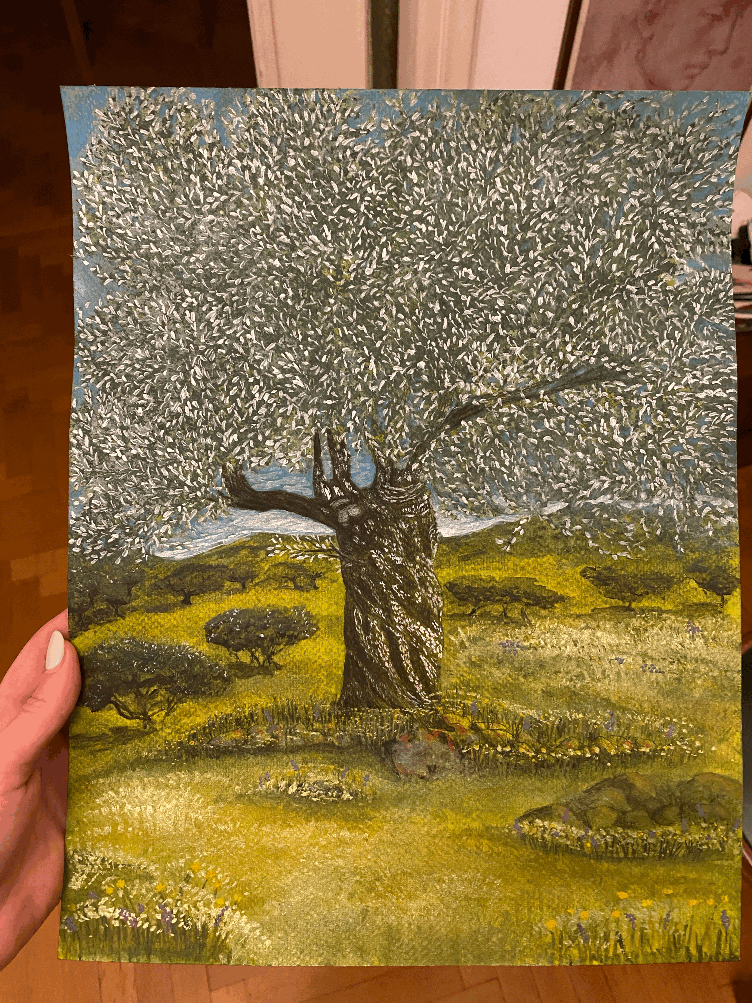 Inspired by Greek landscapes, through Wisdom of Roots, Memory and growth, depths of the soul and sky’s infinity : Olive trees are dancing and whispering their secrets, sheep and foxes, Holy blue and a golden light. Nature’s heritage embedded with human’s dreams and Lost thoughts .